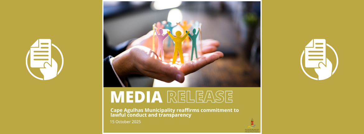 MEDIA RELEASE EMBARGO: Immediate DATE: 15 October 2025 Cape Agulhas Municipality reaffirms commitment to lawful conduct and transparency / Kaap Agulhas Munisipaliteit bevestig verbintenis tot wetlike optrede en dienslewering Cape […]